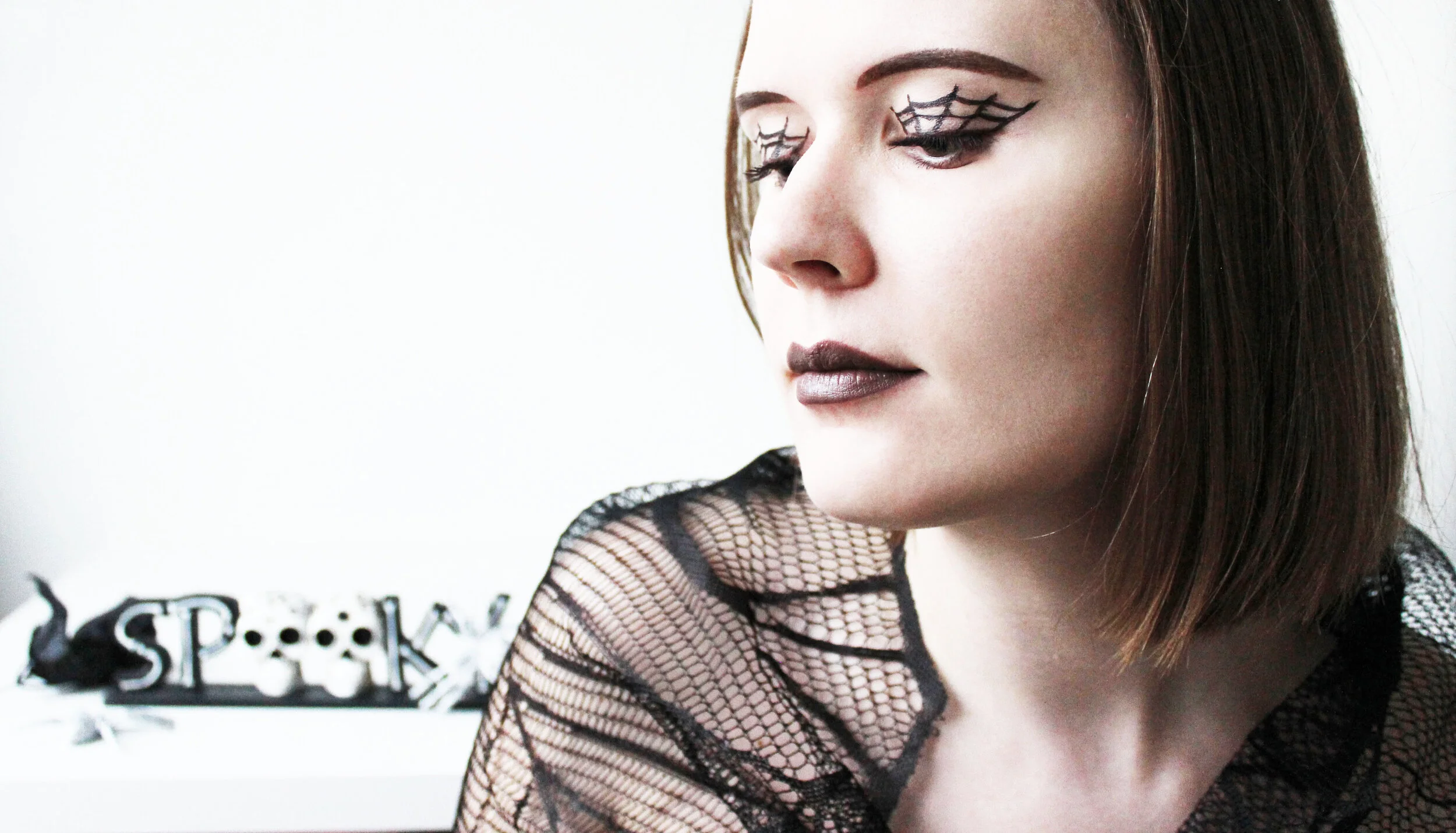 Now if you wanted to be really fancy/creepy with this look (and had a lot of extra time to spare) then you could always do a double or triple vision makeup look to imitate the numerous eyes that spiders have. But I took the easy way out, and with just one good eyeliner, my trusted Collection Extreme 24 Hour Felt Tip Liner in 1 Black, I drew spider webs on my eyelids.